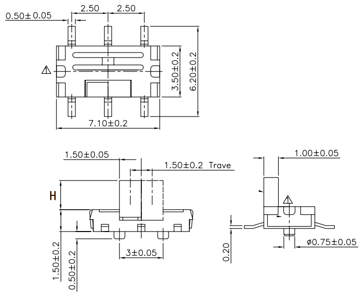使用溫度范圍:﹣10℃~+50℃;壽命:10,000 Cycles;行程:2.0±0.1mm;按力:200±70gf;開關高度有2/3/4mm可選